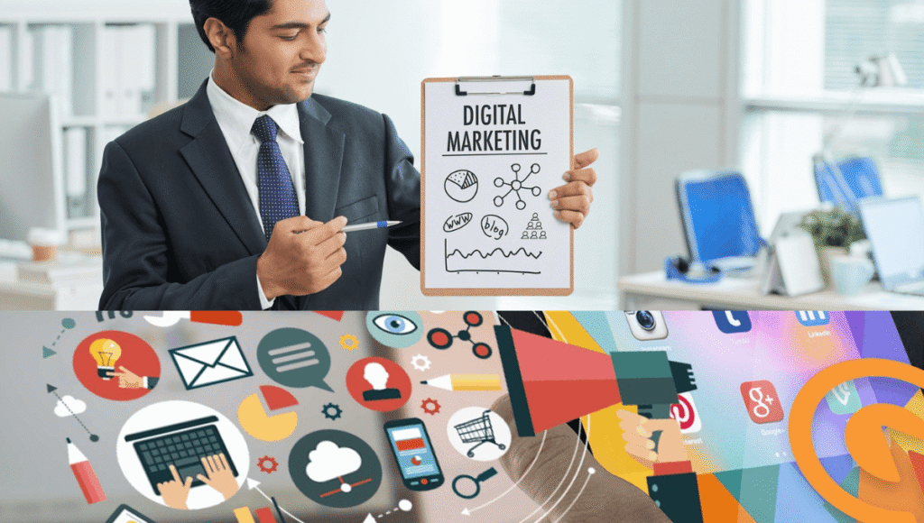 यह सिर्फ़ “सोशल मीडिया पर पोस्ट करना” नहीं है। यह एक प्रोफेशनल स्किल है जिसमें कंपनियों को ऑनलाइन ग्रो करने में मदद करना शामिल है – Google पर रैंकिंग, सोशल मीडिया पर ब्रांड बनाना, ईमेल कैंपेन चलाना, और YouTube वीडियो को वायरल करना।